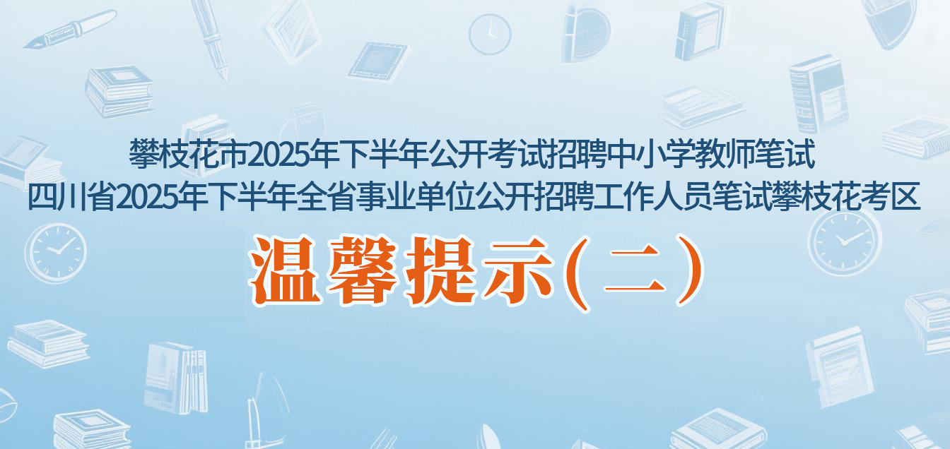 攀枝花市2025年下半年公開考試招聘中小學教師筆試 四川省2025年下半年全省事業(yè)單位公開招聘工作人員筆試攀枝花考區(qū)考前溫馨提示(一)2025-11-07